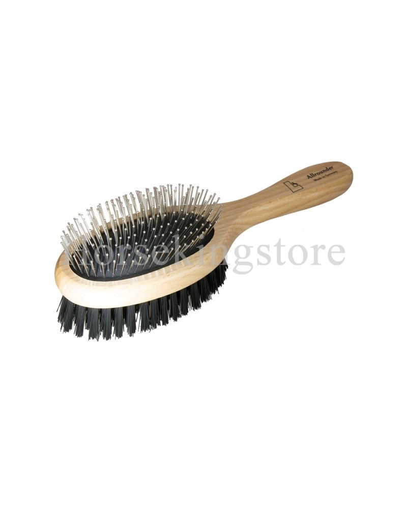Brosse pour la crinière et la queue en bois Leistner avec poignée en bois et broches métalliques. Couleur unique.
